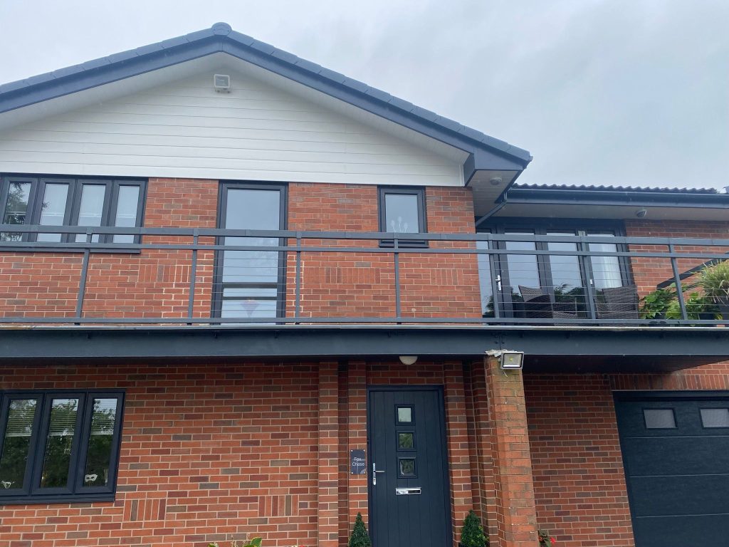 We have removed all the old wooden fascia, soffits, and plastic guttering from this property and replaced it with new anthracite grey PVC, adding dry verge caps to finish the look.